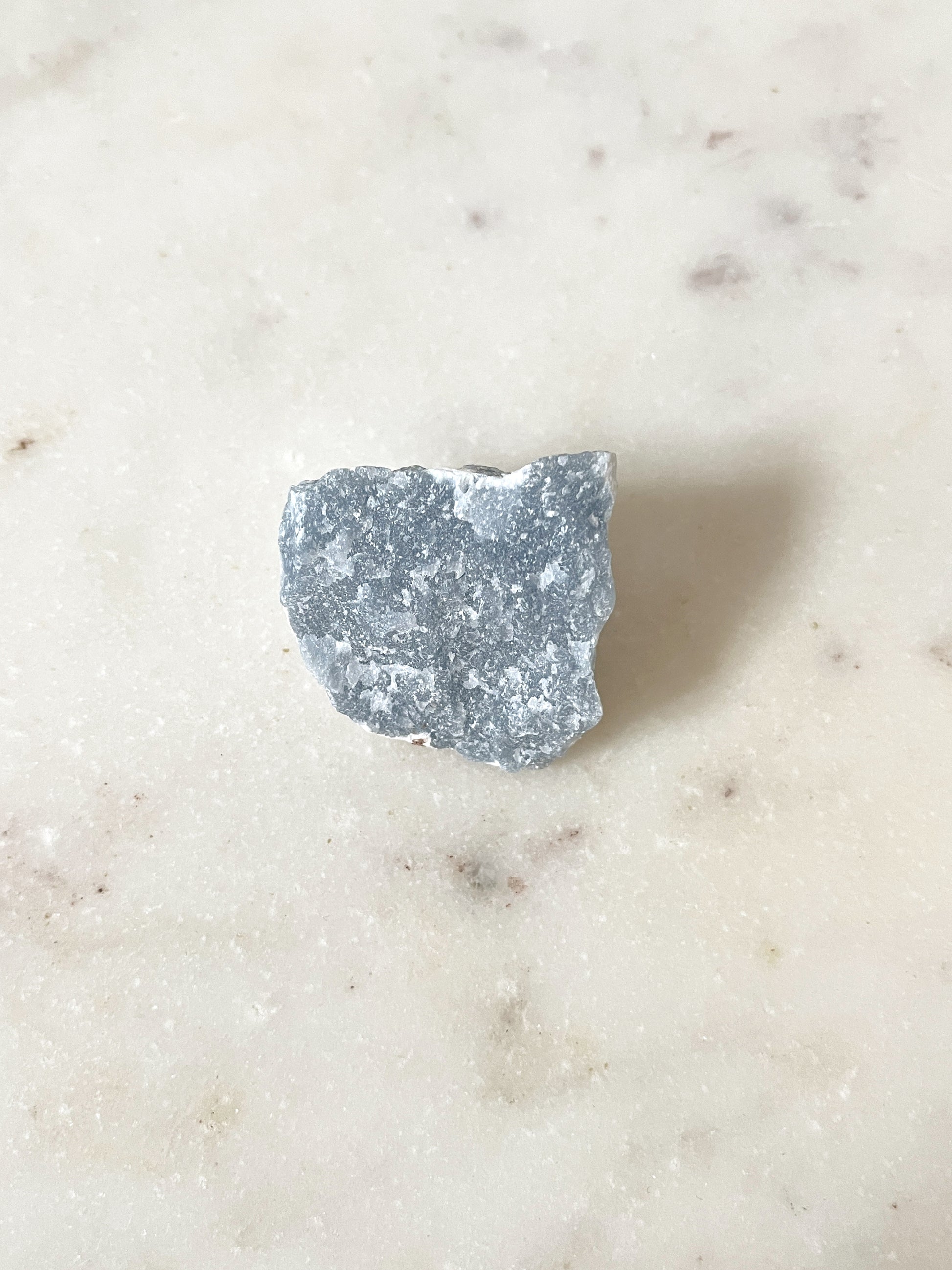 Angelit - znany ze swoich właściwości kojących i wyciszających, pomaga w uzyskaniu spokoju i harmonii. Angelit jest również uznawany za ogromne wsparcie w rozwoju duchowym. Pozwala na połączenie się z intuicją i wyższą świadomością. Zwiększa wiarę w siebie, obdarowuje wspierającą i wzmacniającą energią.