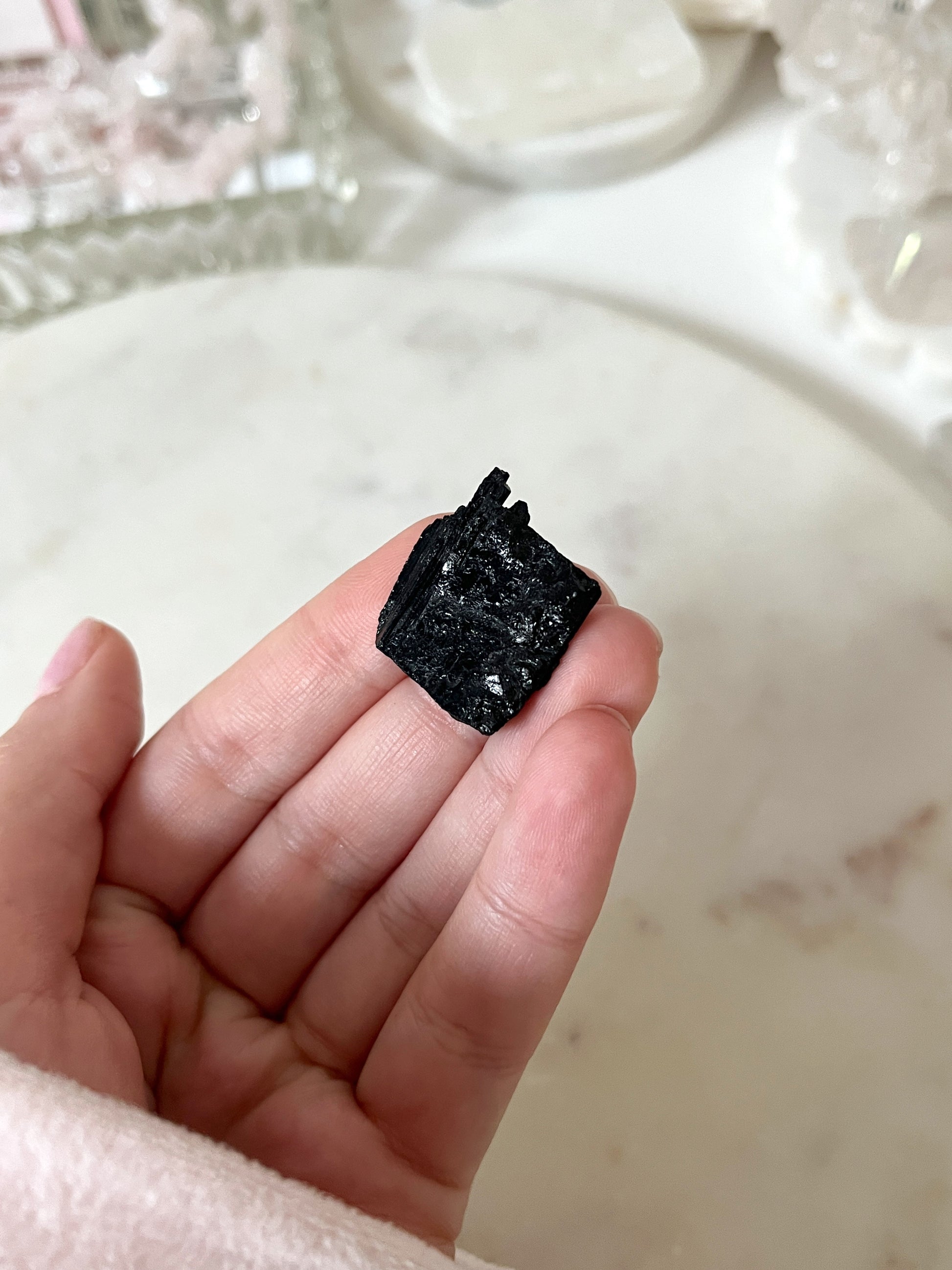 Czarny turmalin - chroni przed negatywną energią i szkodliwym wpływem innych ludzi. Pomaga w usuwaniu blokad energetycznych. Zwiększa pewność siebie, poczucie niezależności i sprawczości. Uznawany za kamień uziemiający, pozwalający twardo stąpać po ziemi i nie tracić kontaktu z rzeczywistością.