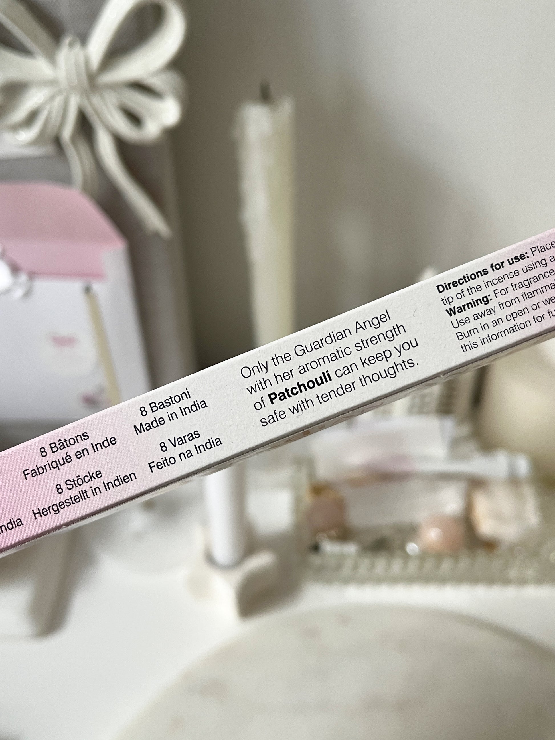 "Only the Guardian Angel with her aromatic strength of Patchouli can keep you safe with tender thoughts."