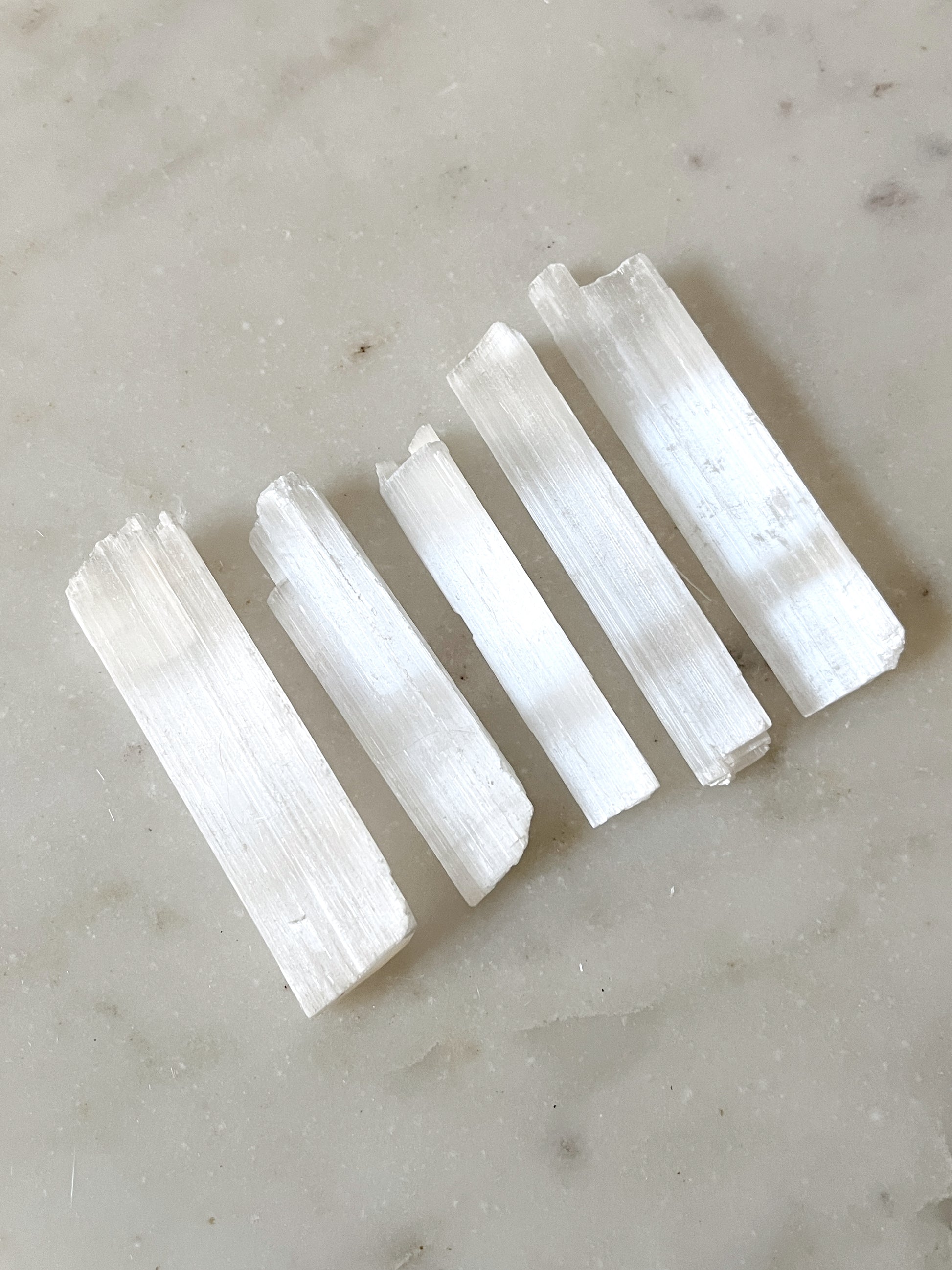 Selenit – kamień o działaniu oczyszczającym, wyciszającym i uspokajającym. Pomaga w uzyskaniu jasności umysłu (doskonale nada się zatem do medytacji), ułatwia też zapanowanie nad chaosem zarówno w otoczeniu, jak i we własnej głowie. Poprawia jakość snu, stabilizuje emocje, daje poczucie bezpieczeństwa. Używany do oczyszczania innych minerałów, pochłaniania negatywnej energii z otoczenia.