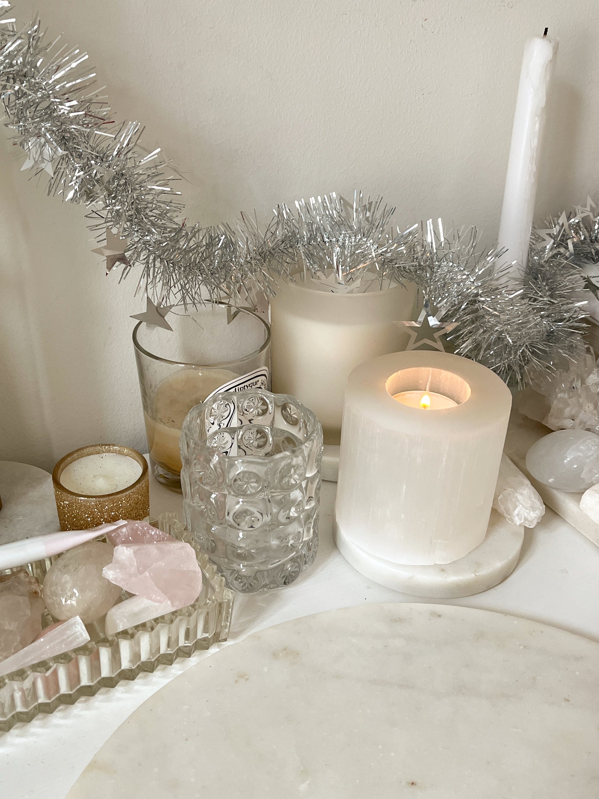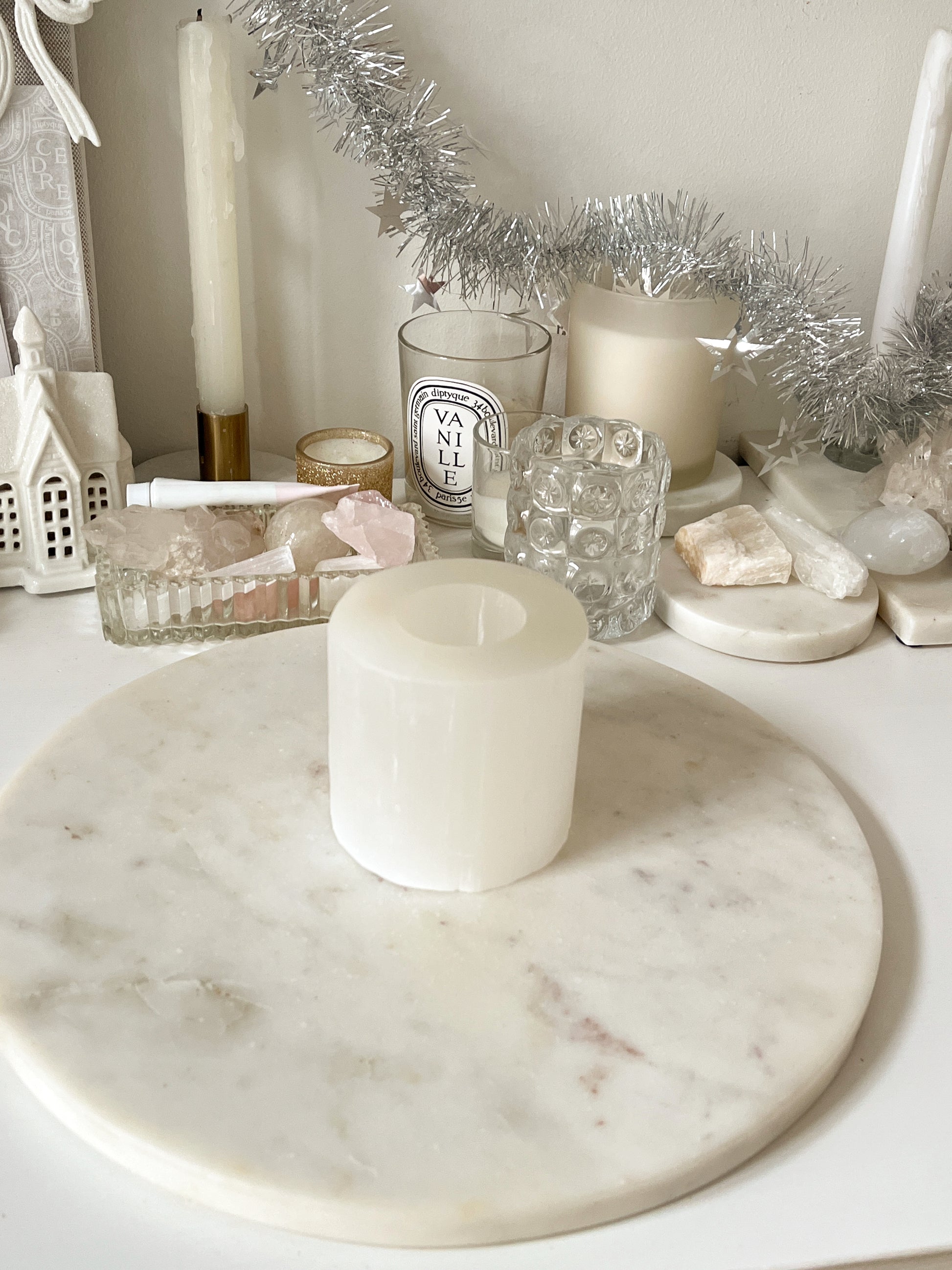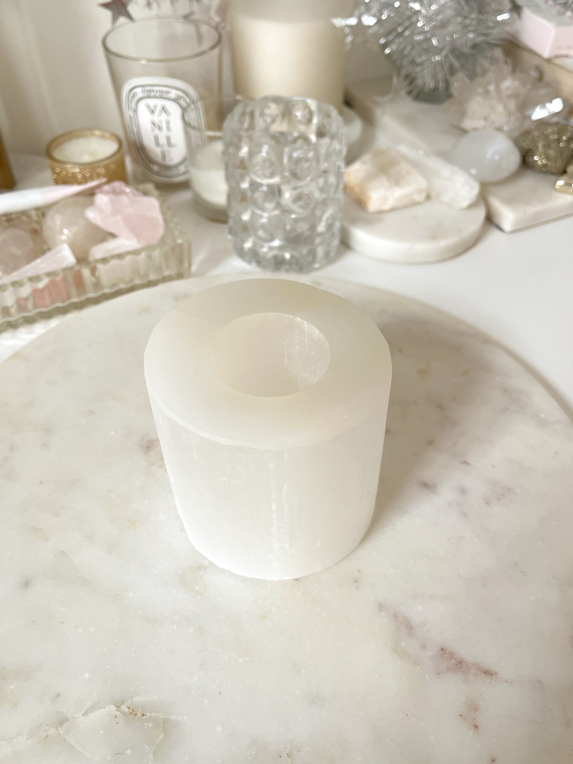 Przekształć swoją przestrzeń dzięki pięknemu świecznikowi na tealighty z naturalnego selenitu.