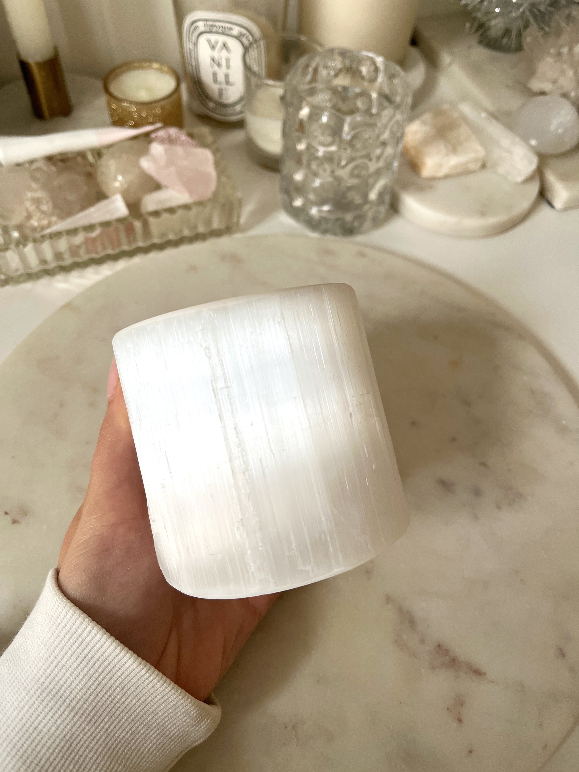 Selenit, znany jako kamień oczyszczenia i spokoju, wzmacnia aurę każdego pomieszczenia. Kiedy umieścisz w nim świeczkę tealight, rozproszy ona ciepły, subtelny blask, idealny do stworzenia atmosfery relaksu, wieczornego wyciszenia lub medytacji.